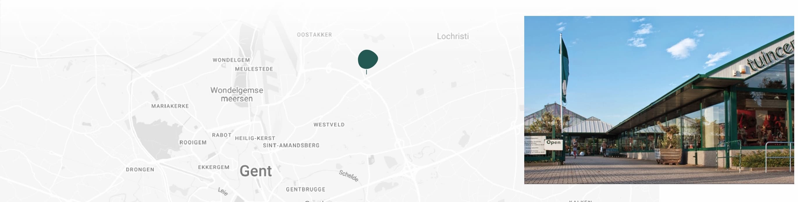 Het tuincentrum is heel makkelijk bereikbaar via de Antwerpsesteenweg van Gent, of vanop de R4, afrit Oostakker, die uitmondt vlak voor het Tuincentrum.
